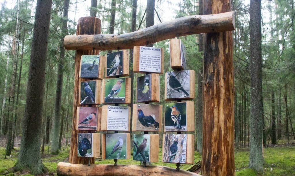 Информационные таблички о лесных экосистемах и правилах поведения в природе;